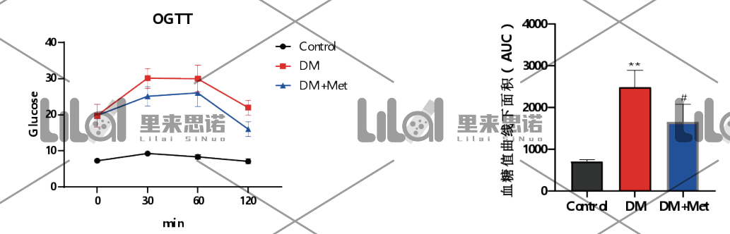 功;根據(jù)體重及血糖值分為模型組和陽性藥物組(二甲雙胍,150 mg/kg),連續(xù)干預2周。用普通維持飼料飼喂小鼠作為空白對照組(Control)。