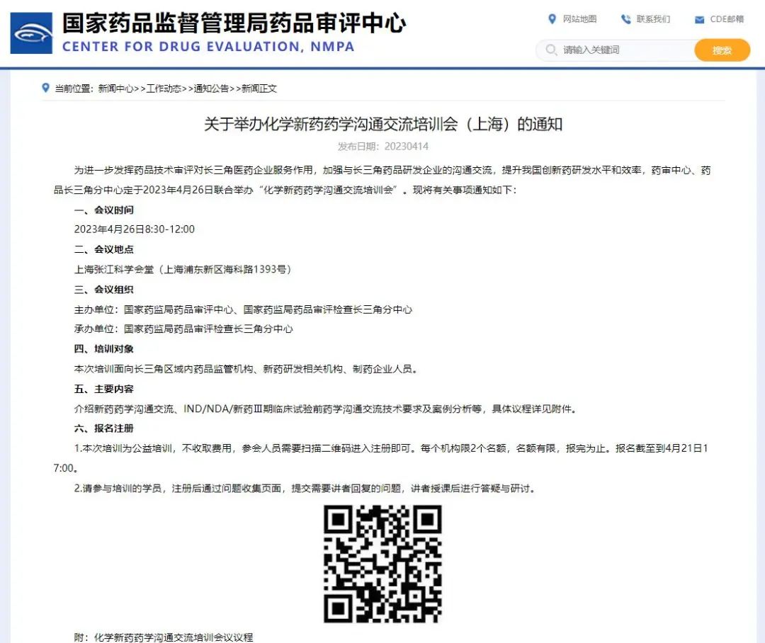 為進(jìn)一步發(fā)揮藥品技術(shù)審評(píng)對(duì)長(zhǎng)三角醫(yī)藥企業(yè)服務(wù)作用,加強(qiáng)與長(zhǎng)三角藥品研發(fā)企業(yè)的溝通交流,提升我國(guó)創(chuàng)新藥研發(fā)水平和效率,藥審中心、藥品長(zhǎng)三角分中心定于2023年4月26日聯(lián)合舉辦“化學(xué)新藥藥學(xué)溝通交流培訓(xùn)會(huì)”。現(xiàn)將有關(guān)事項(xiàng)通知如下: