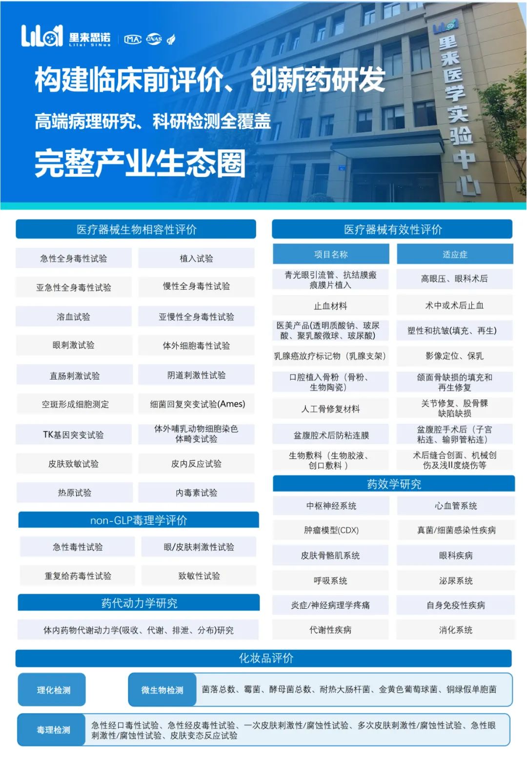截至目前,里來(lái)思諾已完成醫(yī)療器械生物材料評(píng)價(jià)領(lǐng)域,化妝品評(píng)價(jià)領(lǐng)域的CMA資質(zhì)認(rèn)定,可出具符合國(guó)家有關(guān)法律、行政法規(guī)標(biāo)準(zhǔn)、具有證明作用的數(shù)據(jù)和結(jié)果。